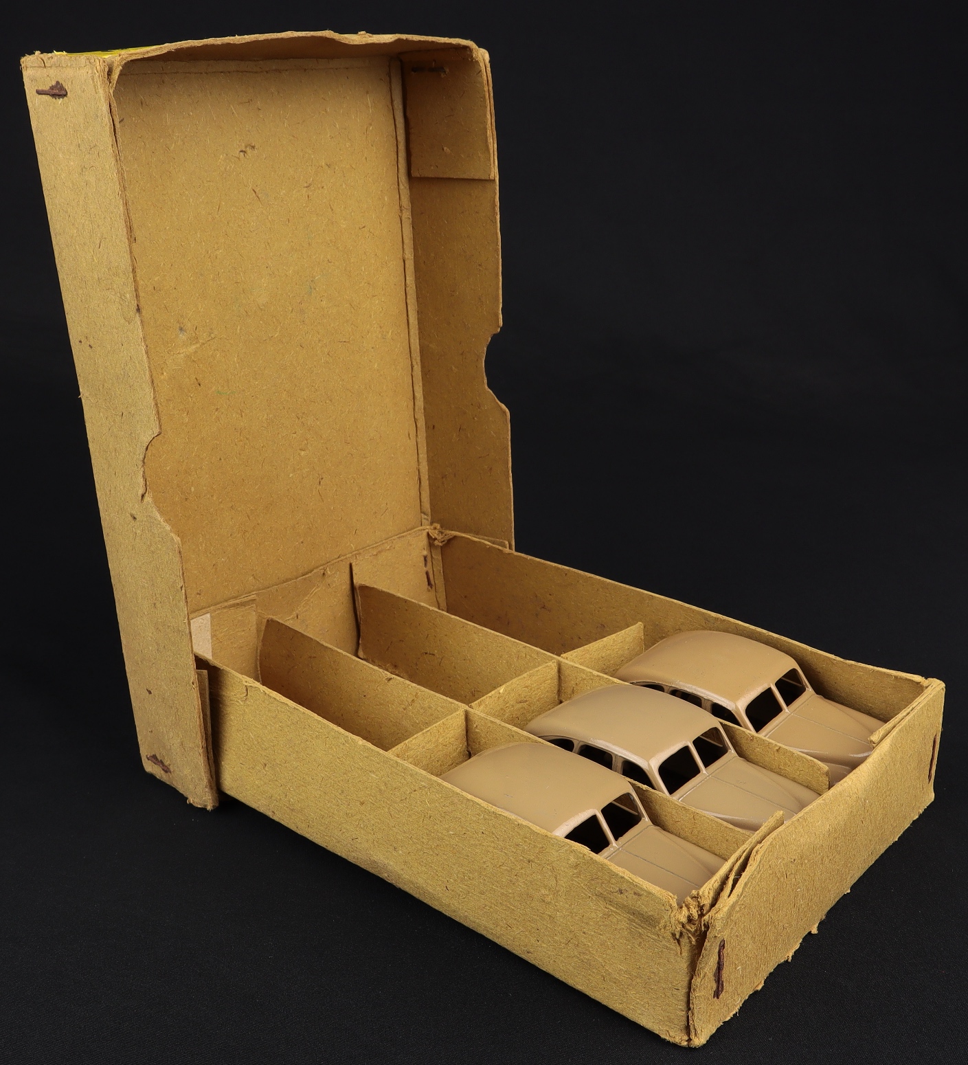 3 x Dinky Toys 153 Standard Vanguard Saloons in Dinky Trade Box, with dividers. Early casting. Near mint plus - very near mint. From The Reference Collection of fine Dinky. Starting bid £300. Please note that QDT apply 12.5% buyer's commission.
