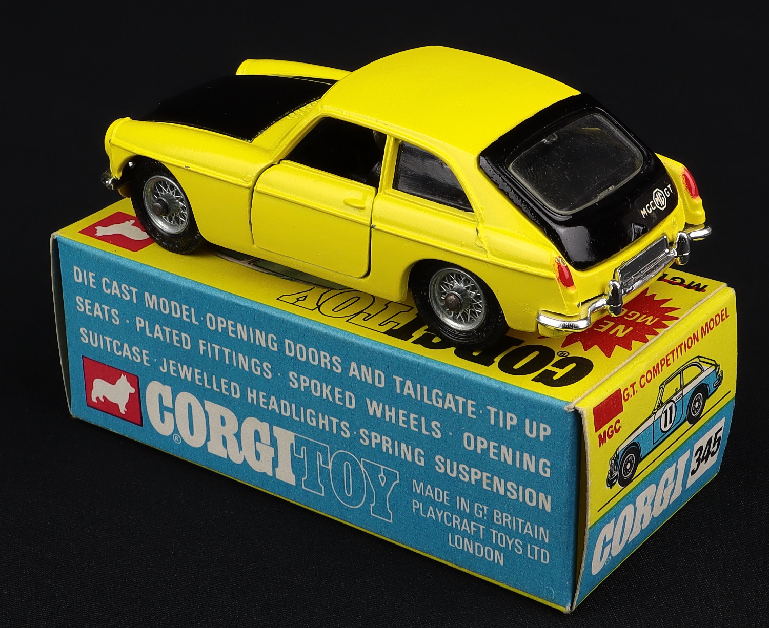MGC GT by Corgi Toys, No. 345. Near mint plus/boxed (interim box ). With correct suitcase. Fresh box too! From The Eccles Collection.
