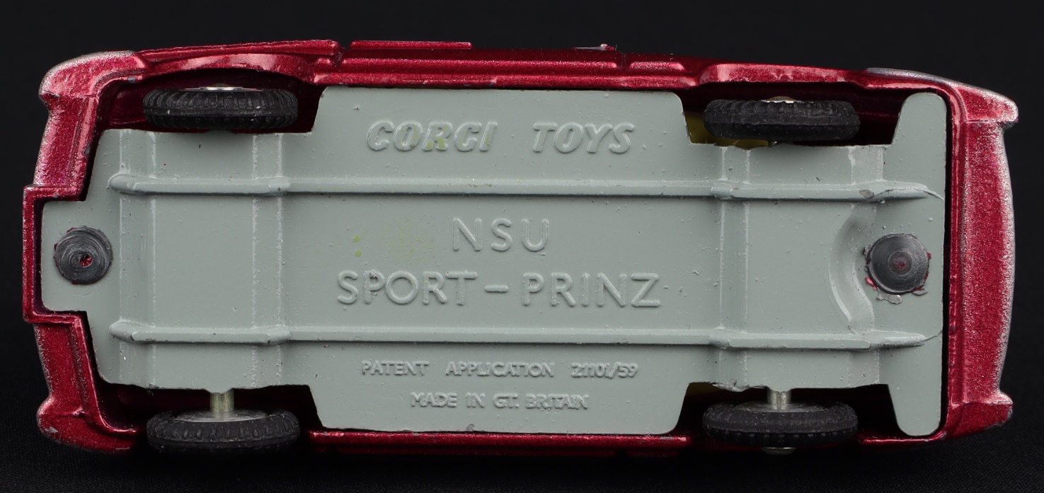 NSU Sport Prinz by Corgi Toys, No.316. A rare find in METALLIC BRICK RED. Very, very near mint/boxed. From The Eccles Collection.