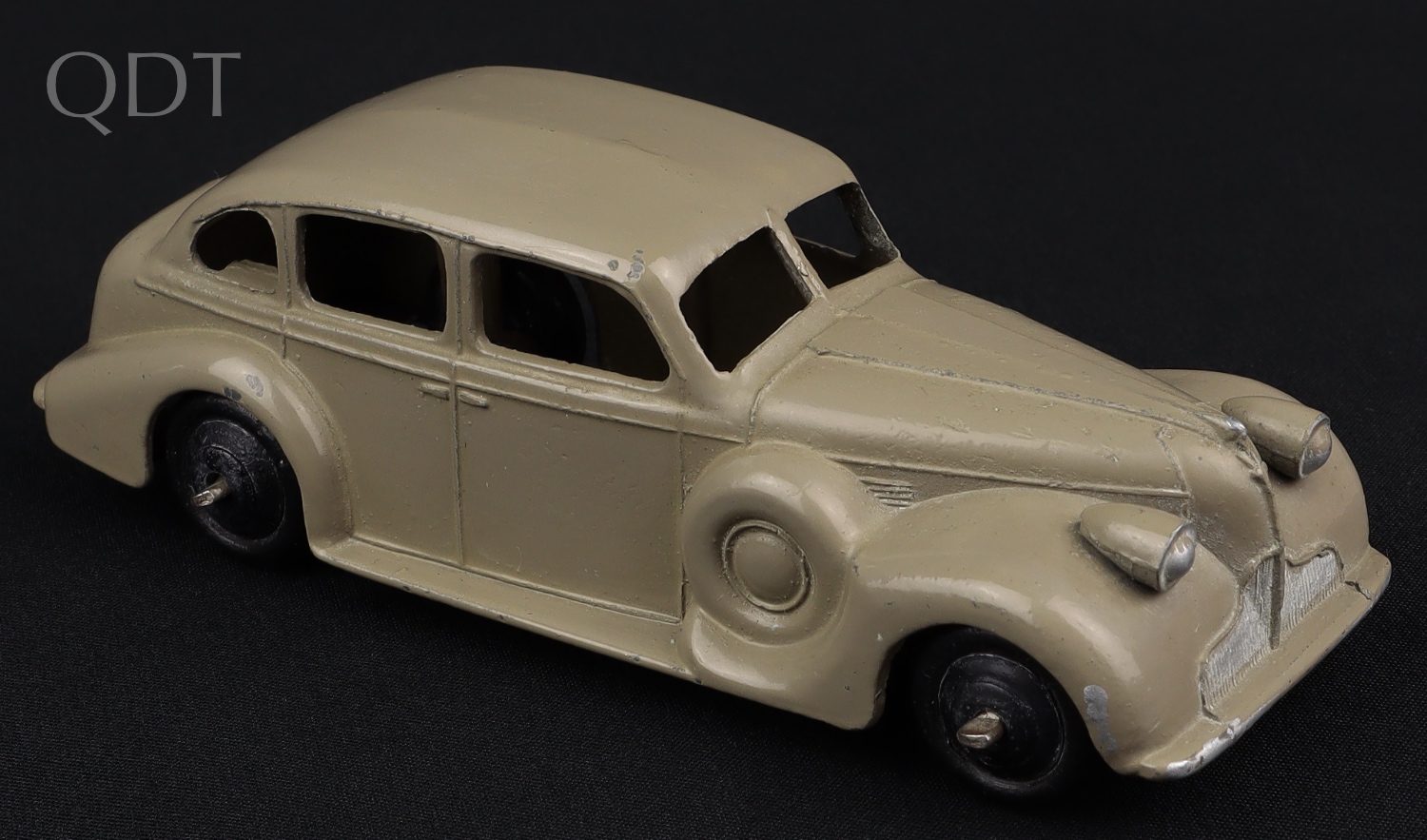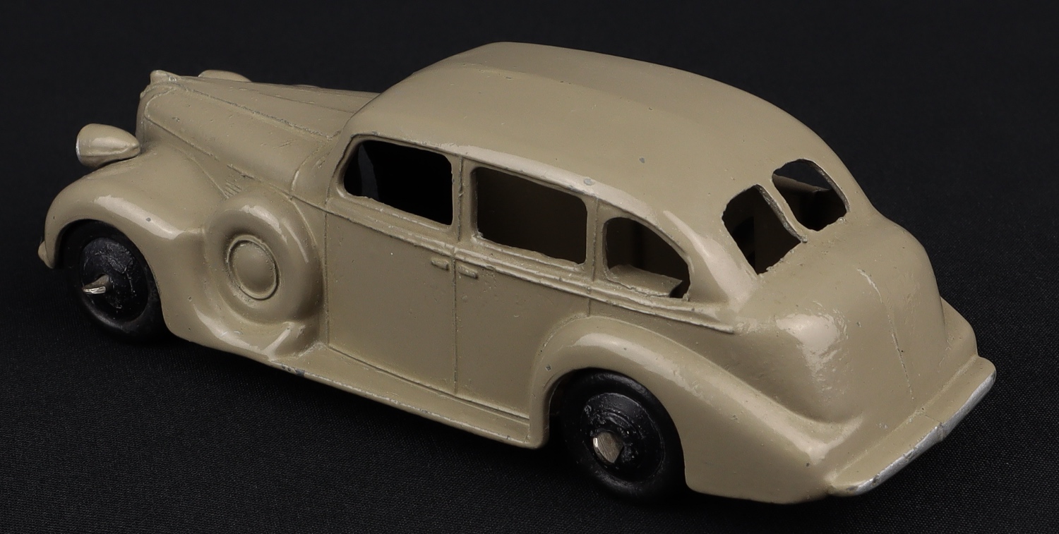 This Buick Viceroy model has a shining, original grey-fawn finish with a black baseplate and ridged hubs. Smooth original black tyres are well-shaped.