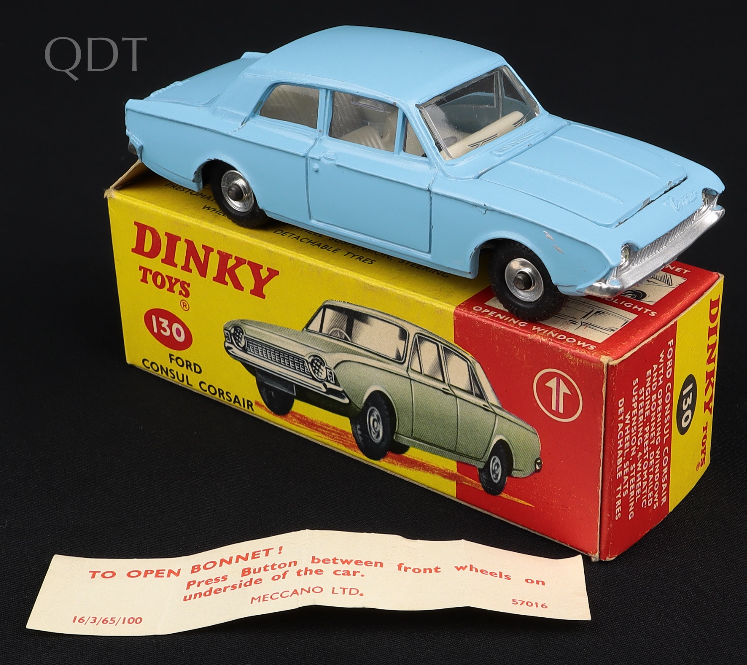Ford Consul Corsair by Dinky Toys, No. 130. Very near mint/boxed with INFORMATIVE SLIP & SERRATED TAG. From The Reference Collection.
