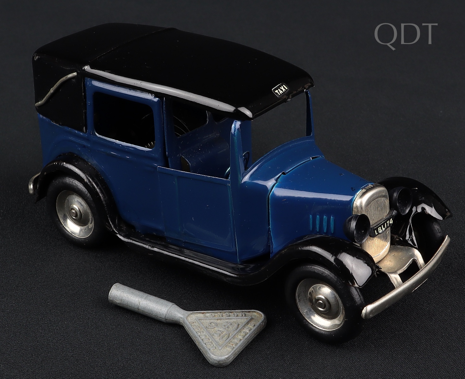 Intact radiator and headlight section and bright metal parts. With complete ‘TAXI’ lettering on the roof. Complete transfers. Shiny wheels. Original smooth black tyres have light wear.