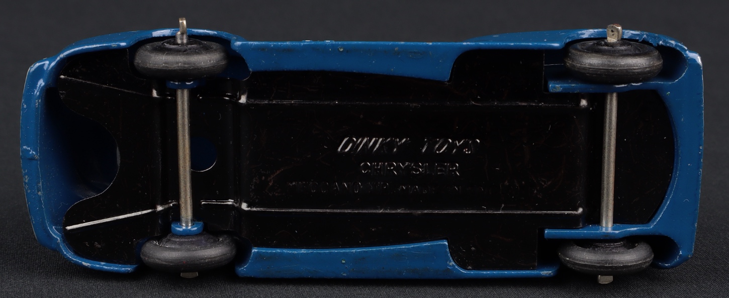 Chrysler Royal Sedan by Dinky Toys, No. 39E. Mid-blue issue. Near mint/never individually boxed. From The Dutch-Hillman Collection. Starting bid £100. Please note that QDT apply 12.5% buyer's commission.