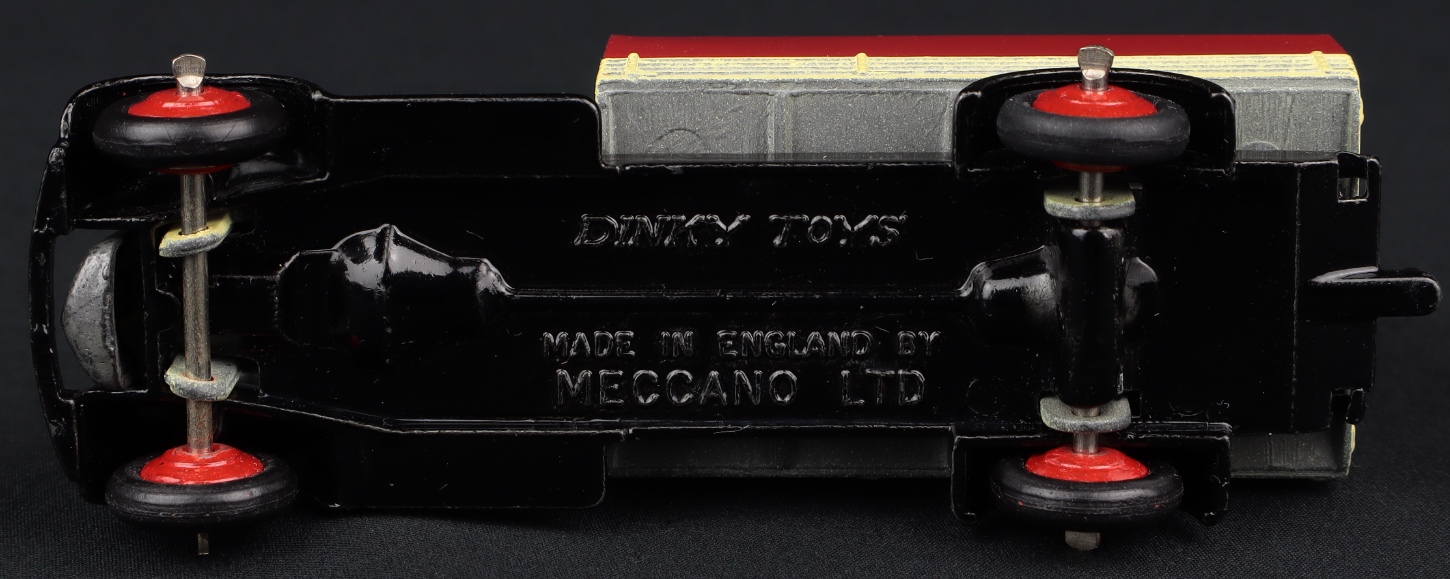 A scarce early Dinky model that would never have been individually boxed. Bright cream and red finish, complete with an undented tinplate canopy, type 4 chassis, intact radiator and headlight assembly. 20 mph hour label is still in place at the rear. Issued between 1947-50, (would have been sold from a shopkeeper’s trade box of 6).