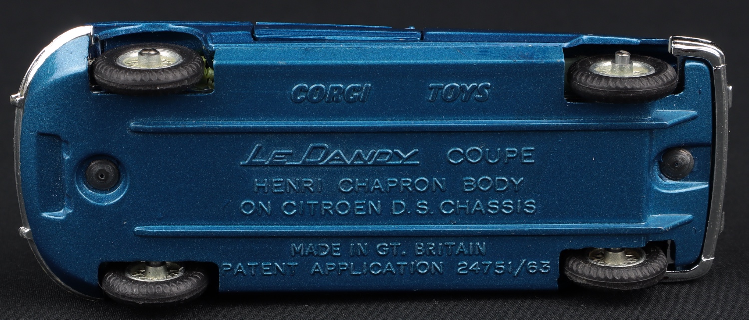 Citroen "Le Dandy" Coupe by Corgi Toys, No. 259. Very near mint/boxed. Scarce issue in metallic blue & white. From The Eccles Collection.