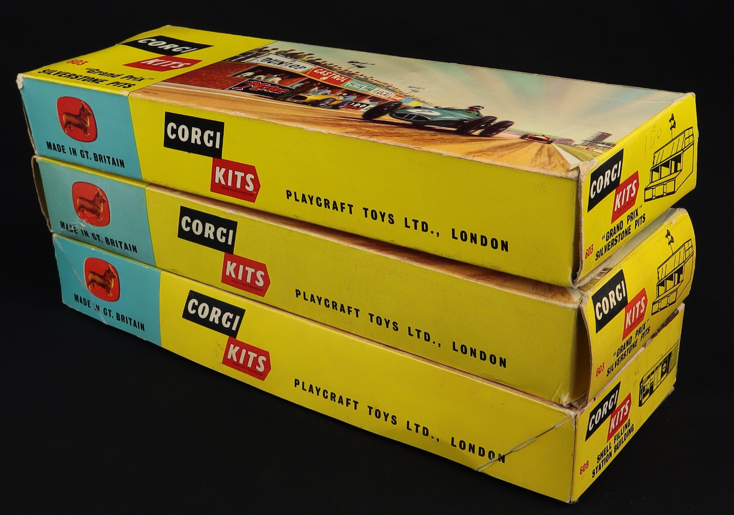 Group of 3 x Corgi Kits from The Silverstone Set (Gift SEt 15) or SHELL BP Garage Set (Gift Set 25). Mint/boxed (minor box wear). From The Elmer Collection. Starting bid £75. Please note that QDT apply 12.5% buyer's commission.