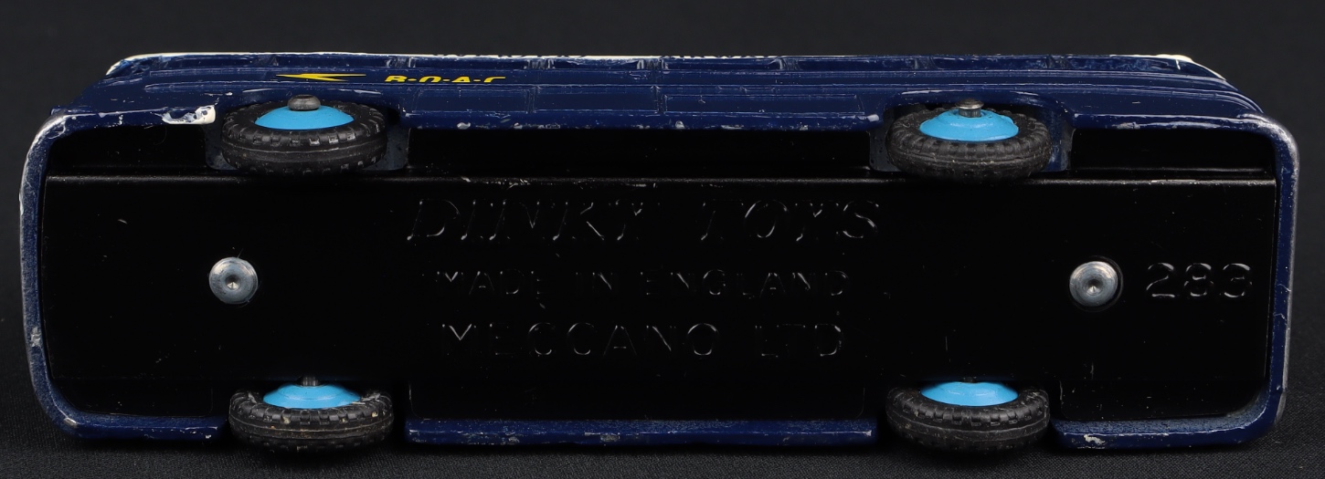 B.O.A.C. Coach by Dinky Toys, No. 283. Very near mint/boxed. Scarce Late Issue PLAIN Box with thin plastic packing strip. A First for QDT! From The Off-shore Collection. QDT starting bid £125. Please note that QDT apply 12.5% buyer's commission.