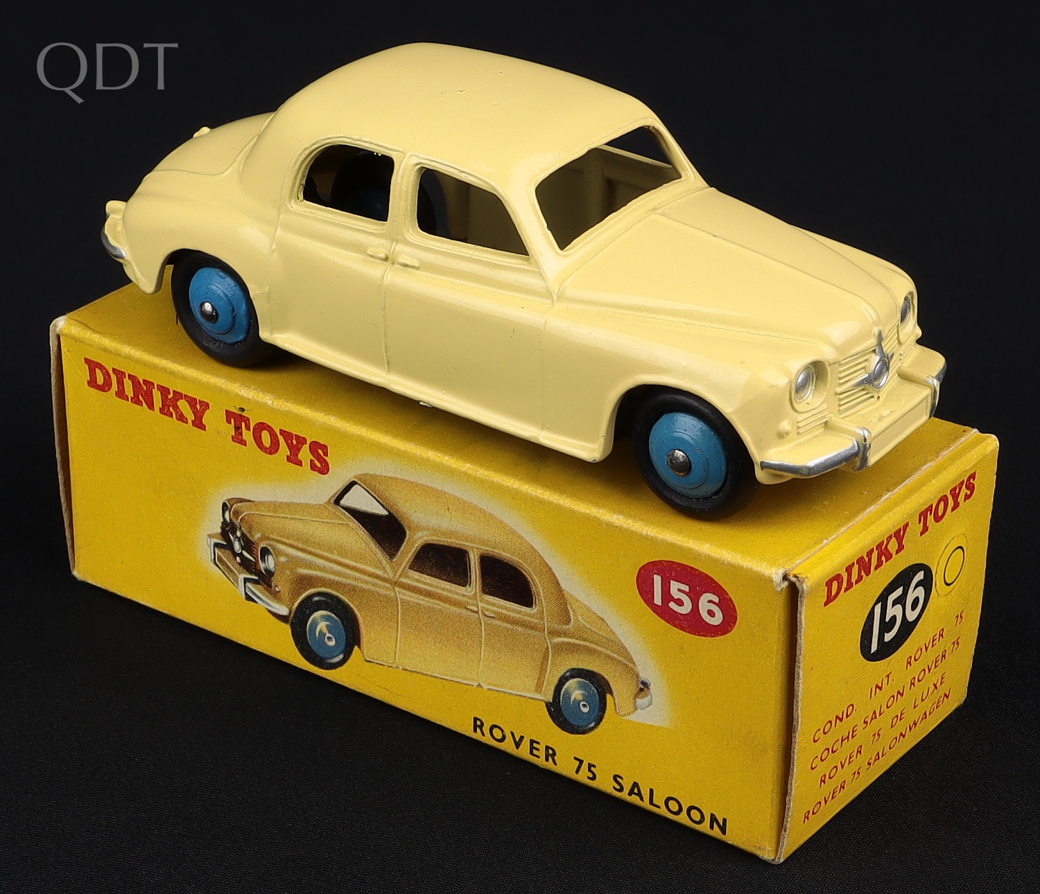 Rover 75 Saloon by Dinky Toys, No. 156. Cream with blue wheels. Scarce. Very near mint/boxed (with this version pictured). From The Dutch-Hillman Collection.