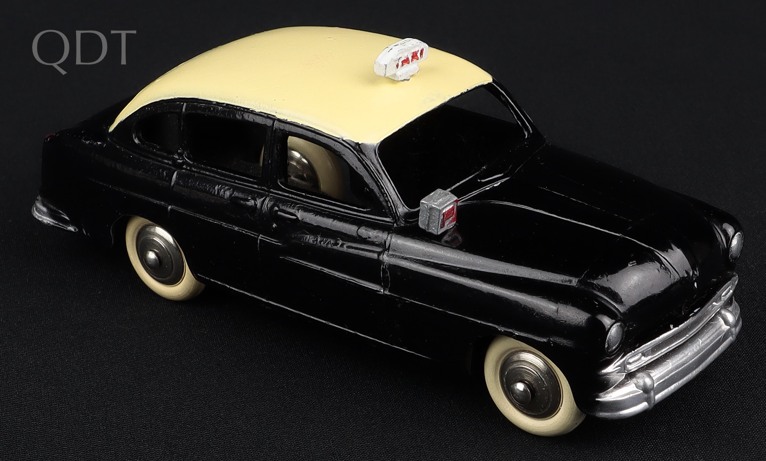 Ford Vedette 'TAXI' by French Dinky Toys, No. 24XT. Black & LEMON-CREAM issue. Scarce. Very near mint/not individually boxed. From The Dutch-Hillman Collection.