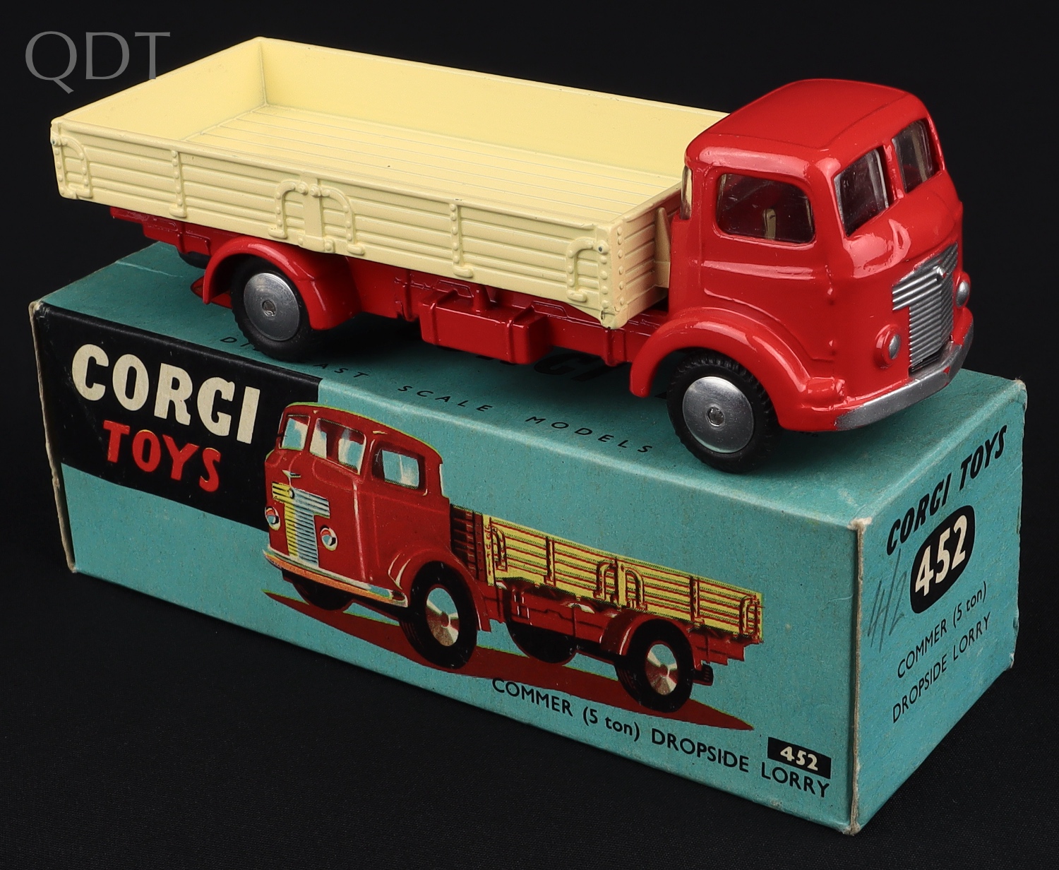 Commer Dropside Lorry by Corgi Toys, No.452. Very near mint/boxed. Scarlet Red and cream with flat spun wheels. From The Elmer Collection.