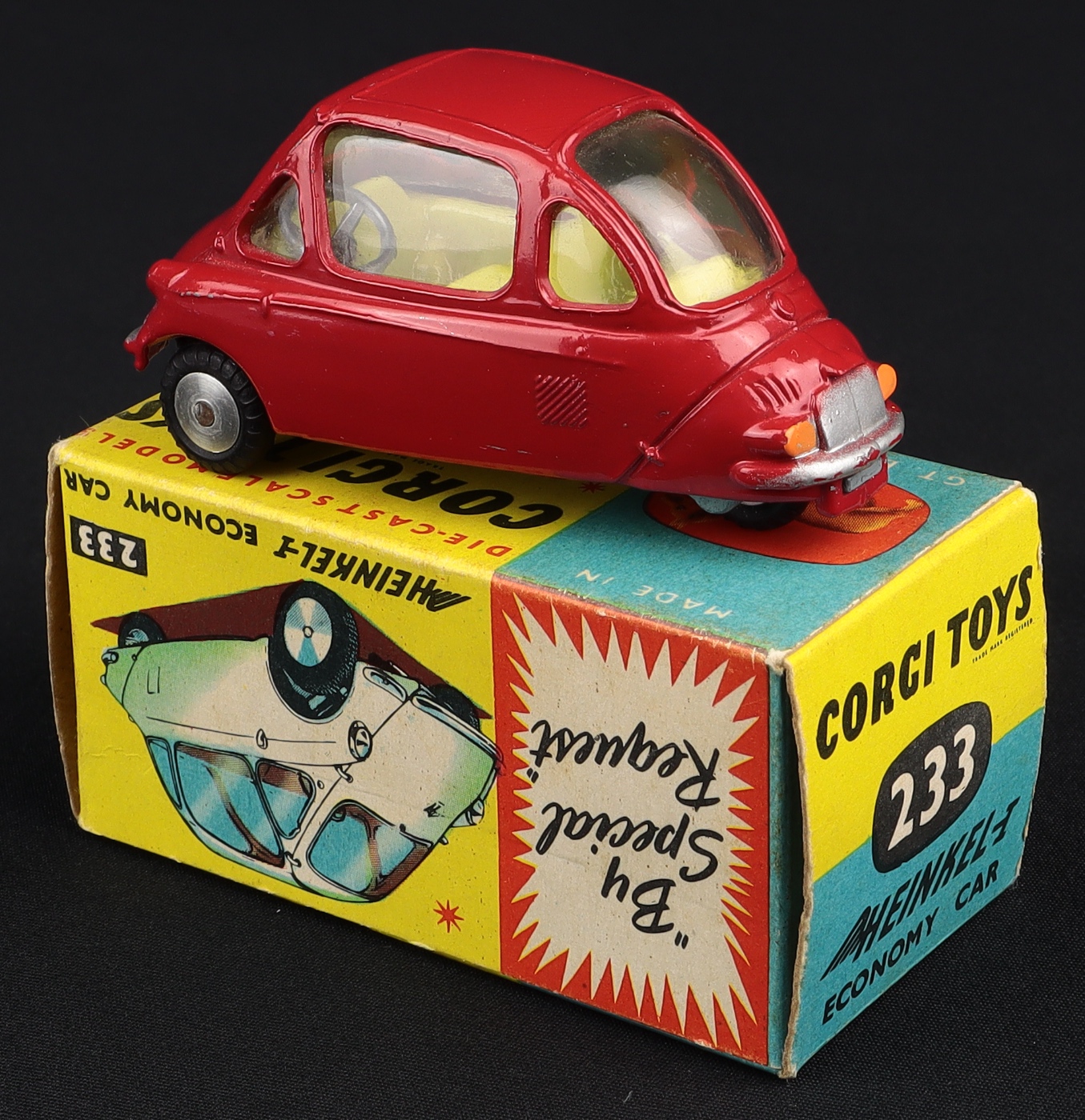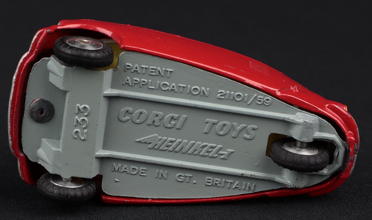 Heinkel Economy Car by Corgi Toys, No. 233. Very near mint/boxed. DEEP RED (not scarlet) version. Scarce. From The Dutch-Hillman Collection.