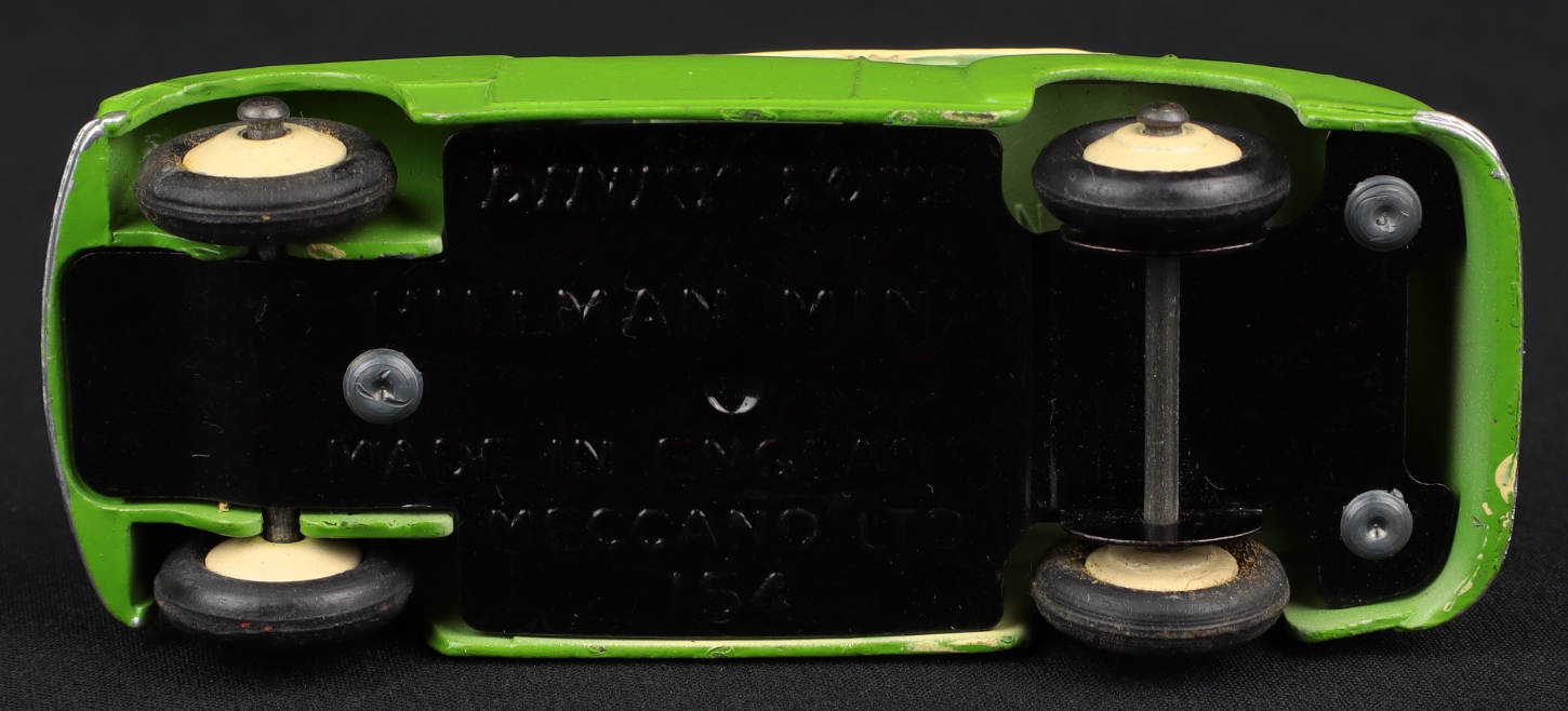 Hillman Minx Saloon by Dinky Toys, No. 154. Scarce two-tone issue in lime green and cream. Very near mint /boxed. Correct two colour spot box. From The Dutch-Hillman Collection.