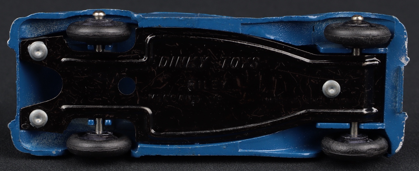 Riley Saloon by Dinky Toys, No. 40A. Scarce issue in MID-BLUE with black wheels. Near mint plus/never boxed individually. From The Reference Collection. QDT starting bid £125. Please note that QDT apply 12.5% buyer's commission