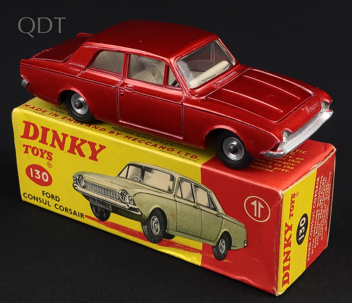 Ford Consul Corsair by Dinky Toys, No. 130. Metallic red 1st issue. Near mint plus/boxed.
