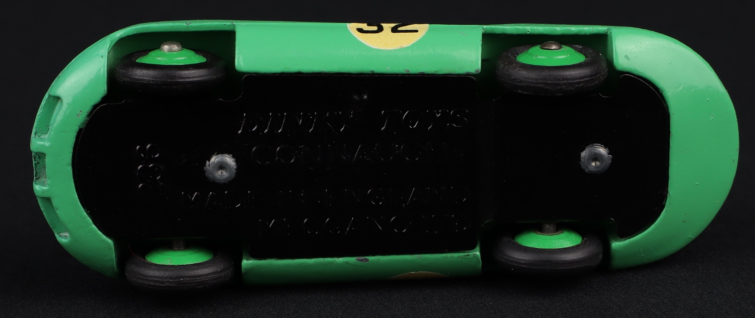 Issued between 1956-59. Original light green finish, complete with driver, red interior, black steering wheel. Complete racing numbers throughout.