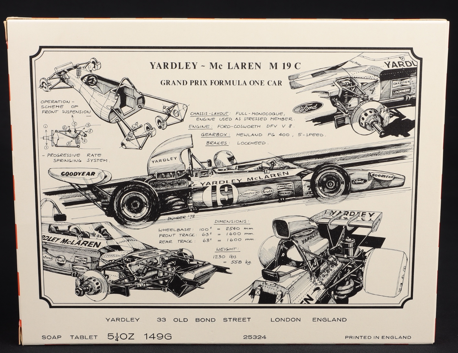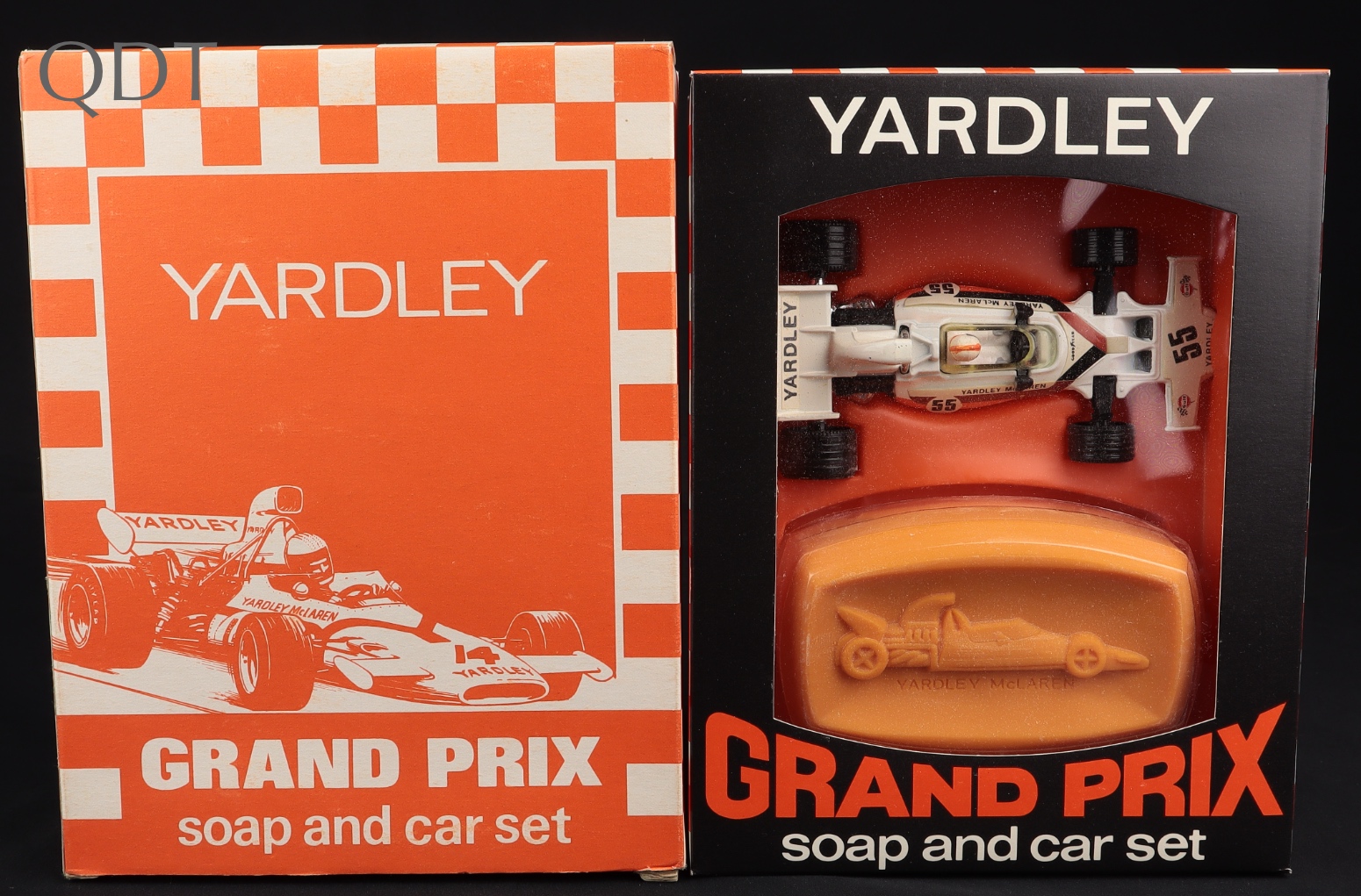 Yardley McLaren M19A Formula 1 Grand Prix Soap and Car Set by Corgi Toys, No. 151. Very, very near mint/boxed, with all packaging, with outer box. Scarce. Old shop stock from The QDT Vault.
