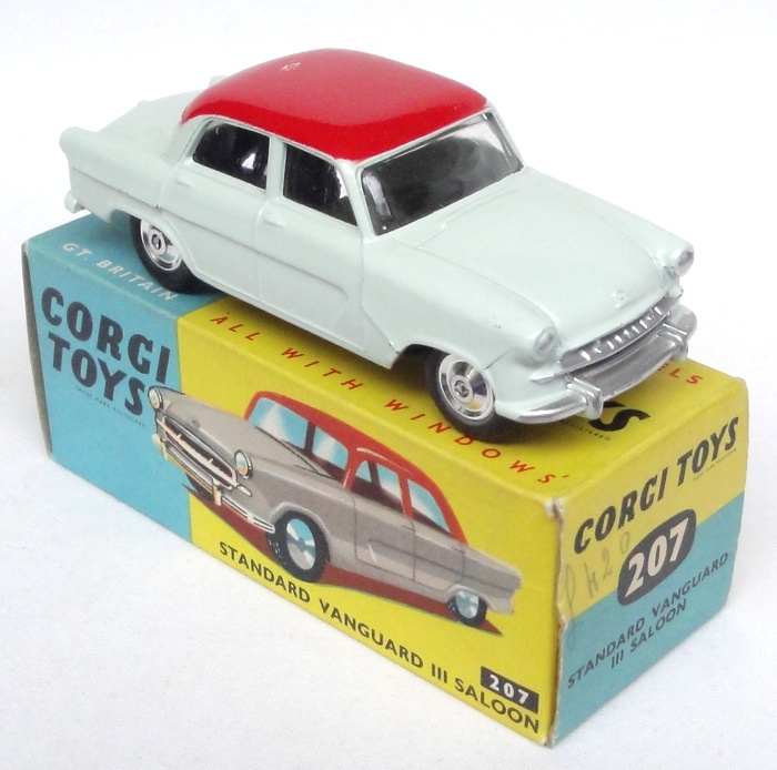 Corgi 207 Standard Vanguard III Saloon. Very pale green & red. Scarce with red roof only! Near mint/boxed. From the Italian collection.